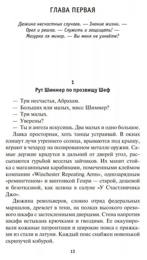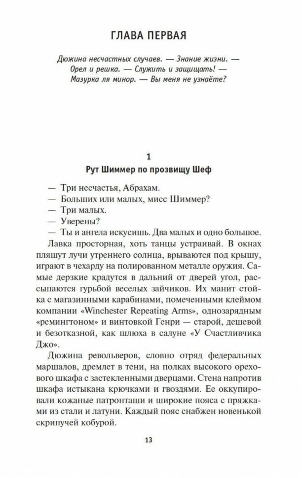 Рут Шиммер носит два револьвера: один стреляет свинцом, другой — проклятиями и несчастными случаями. Револьверы Джошуа Редмана самые обычные, зато у него есть ангел-хранитель, а может, вовсе не ангел. Когда Рут и Джош встретились впервые, на парня упала тяжелая люстра. Дикий Запад, сэр, чего тут только не случается! Здесь разъездные агенты скупают у индейцев и китайских эмигрантов искры — крохотные бесполезные чудеса, а финансисты и промышленники вертят удачей, как чертовым колесом.