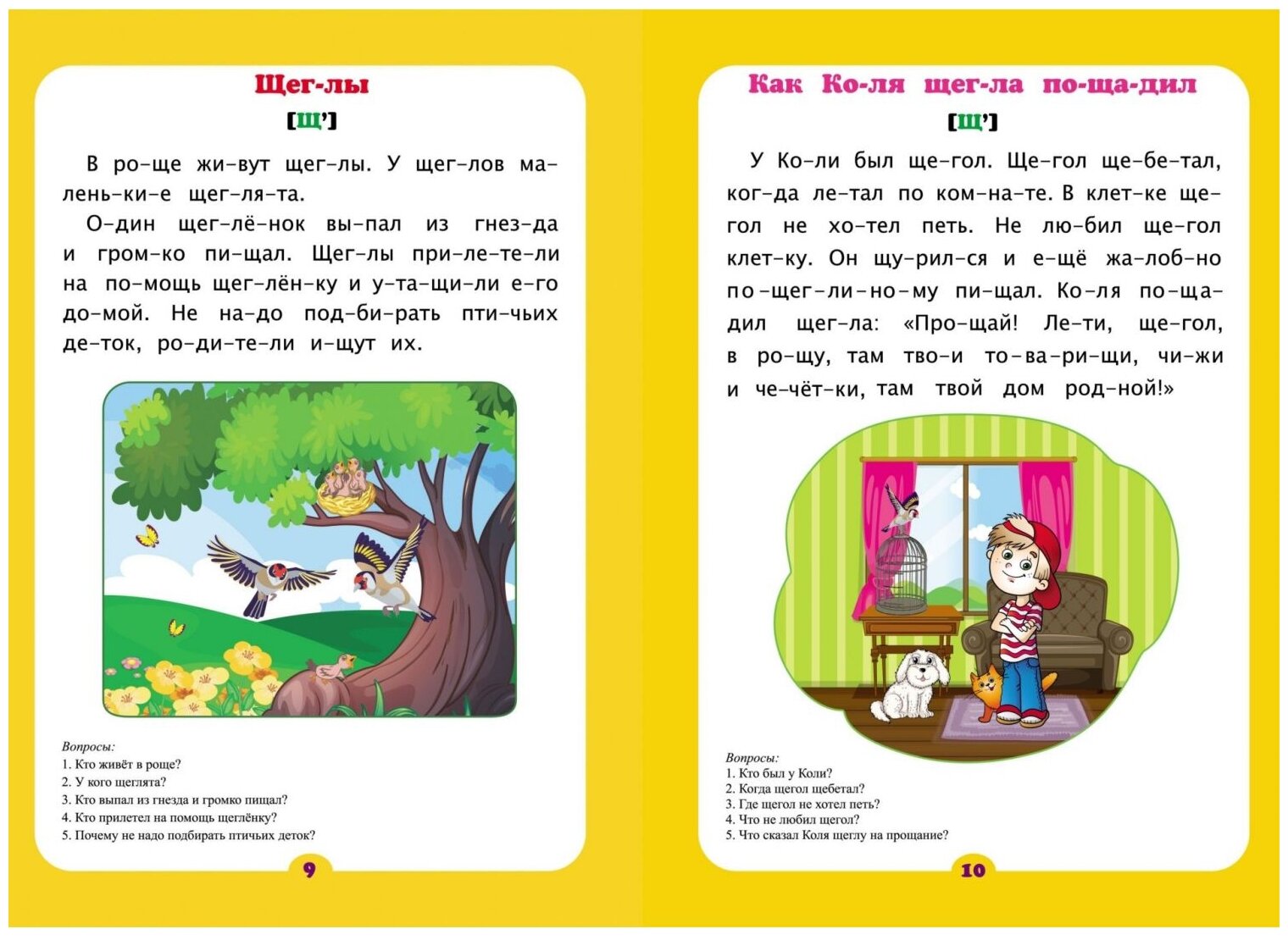 Хотите видеть своего ребенка успешным, грамотным, прилежным - занимайтесь по этой развивающей книжке. Не секрет, для малыша учиться читать и важно, и увлекательно! Будущему школьнику будет легче и интереснее освоить слоговое чтение предложений и текстов с крупным шрифтом и красочными иллюстрациями. Ваши совместные занятия чтением помогут расширить кругозор и словарный запас малыша, он сможет быстро прочесть первые слова и предложения самостоятельно. Кроме того, каждый текст способствует развитию мышления и речи ребенка. Отвечая на вопросы к тексту, он правильно воспроизведет содержание, последовательно перескажет, запомнит детали, потренируется в автоматизации и дифференциации звуков [c], [с’], [р], [р’], [з], [з’], [ш], [ж], [щ’], [ч’], [ц], [л], [л’], [м] [м’], овладеет четким и ясным звукопроизношением.