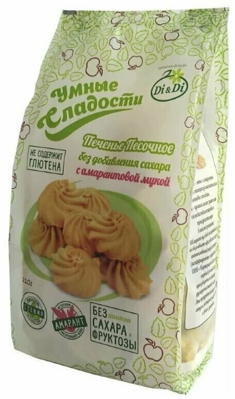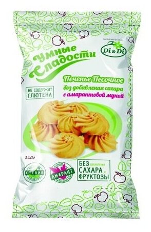 Умные сладости Печенье амарантовое "Песочное" -это полезная альтернатива классическому рецепту песочного печенья. Кукурузная мука входящая в состав, обладает высоким содержанием витаминов и минералов. Амарантовая мука- относится к группе диетических продуктов. Основное ценное свойство-полное отсутствие глютена, высокое содержание сквалена, большое количество пищевых волокон и белка. Входящий в состав топинамбур является источником инулина, нормализующего уровень сахара в крови, а также обладает другими целебными свойствами. В составе полностью отсутствует сахар и глютен. Это рассыпчатое, легкое печенье по достоинству оценят люди соблюдающие специальную диету, а также все , кто следит за своим здоровьем и фигурой.