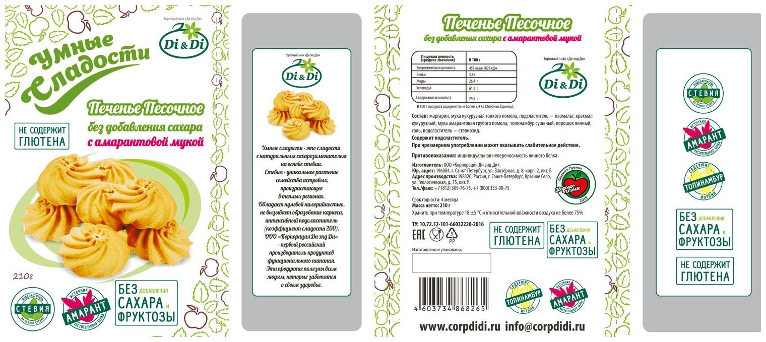 | Состав | маргарин, мука кукурузная тонкого помола, подсластитель – изомальт, крахмал кукурузный, мука амарантовая грубого помола, топинамбур сушеный, порошок яичный, соль, подсластитель – стевизиод |