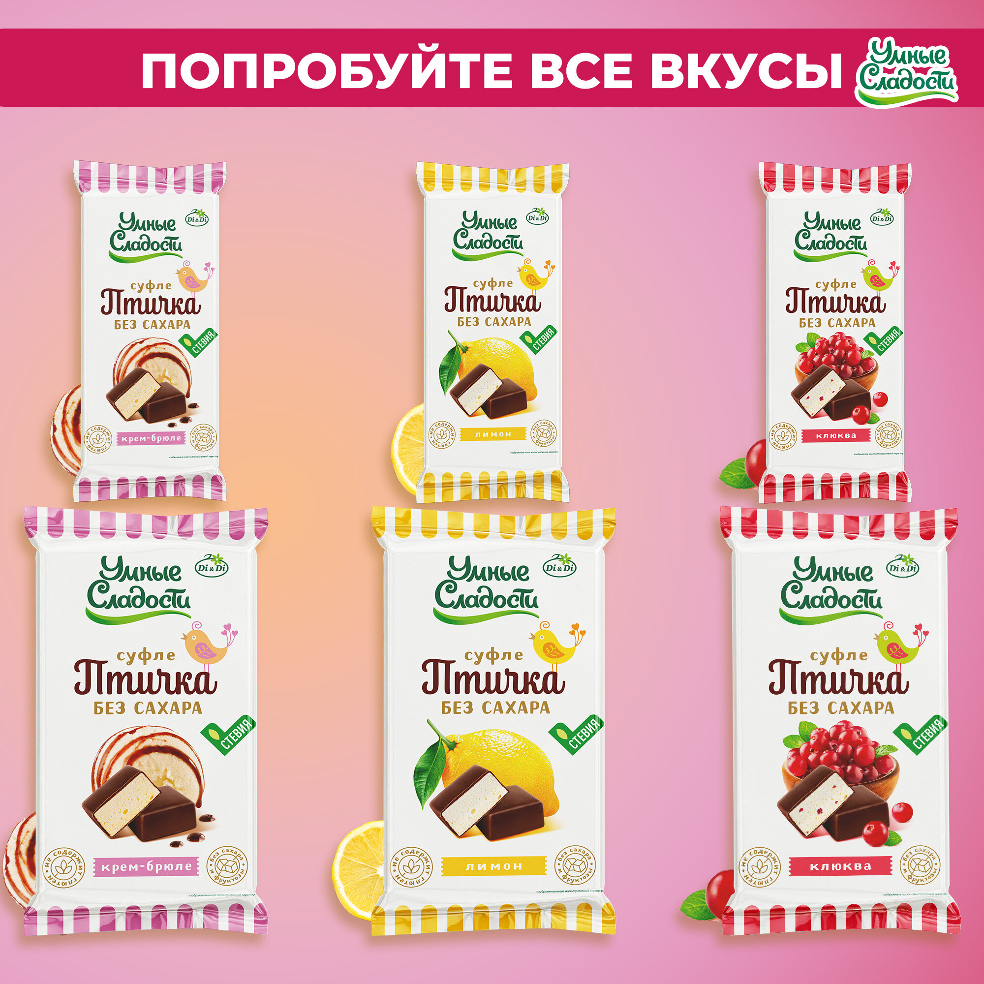Конфеты Умные Сладости Птичка умная Суфле со вкусом крем-брюле 80г