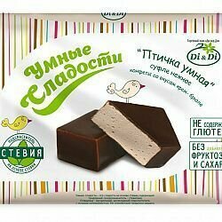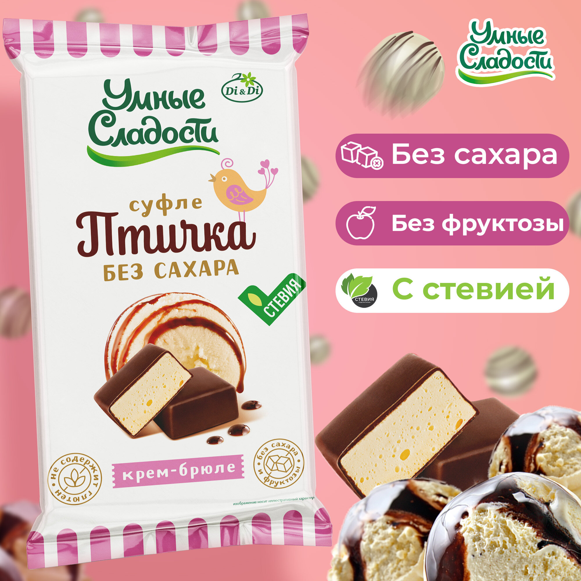Нежное суфле умные сладости Птичка Умная со вкусом крем-брюле на стевии – вкусное и воздушное лакомство. При приготовлении суфле вместо сахара используется натуральный растительный подсластитель – экстракт стевии, обладающий нулевой калорийностью и не вызывающий образования кариеса. Подходит для диетического питания.