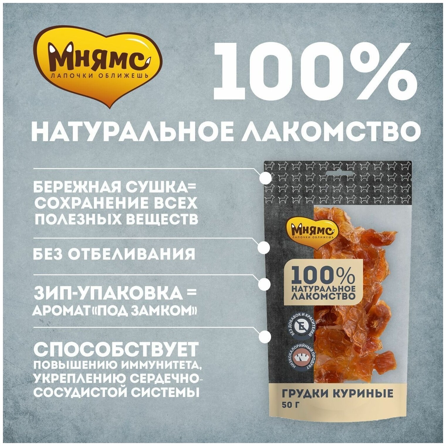 На сегодняшний день товар «Лакомство для собак Мнямс грудки куриные 50г» можно купить с кешбеком в 1 магазине: Яндекс.Маркет