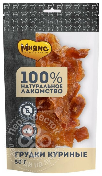 Сервис сравнения цен СкидкаГИД предлагает сравнить цены на товар «Лакомство для собак Мнямс грудки куриные 50г»