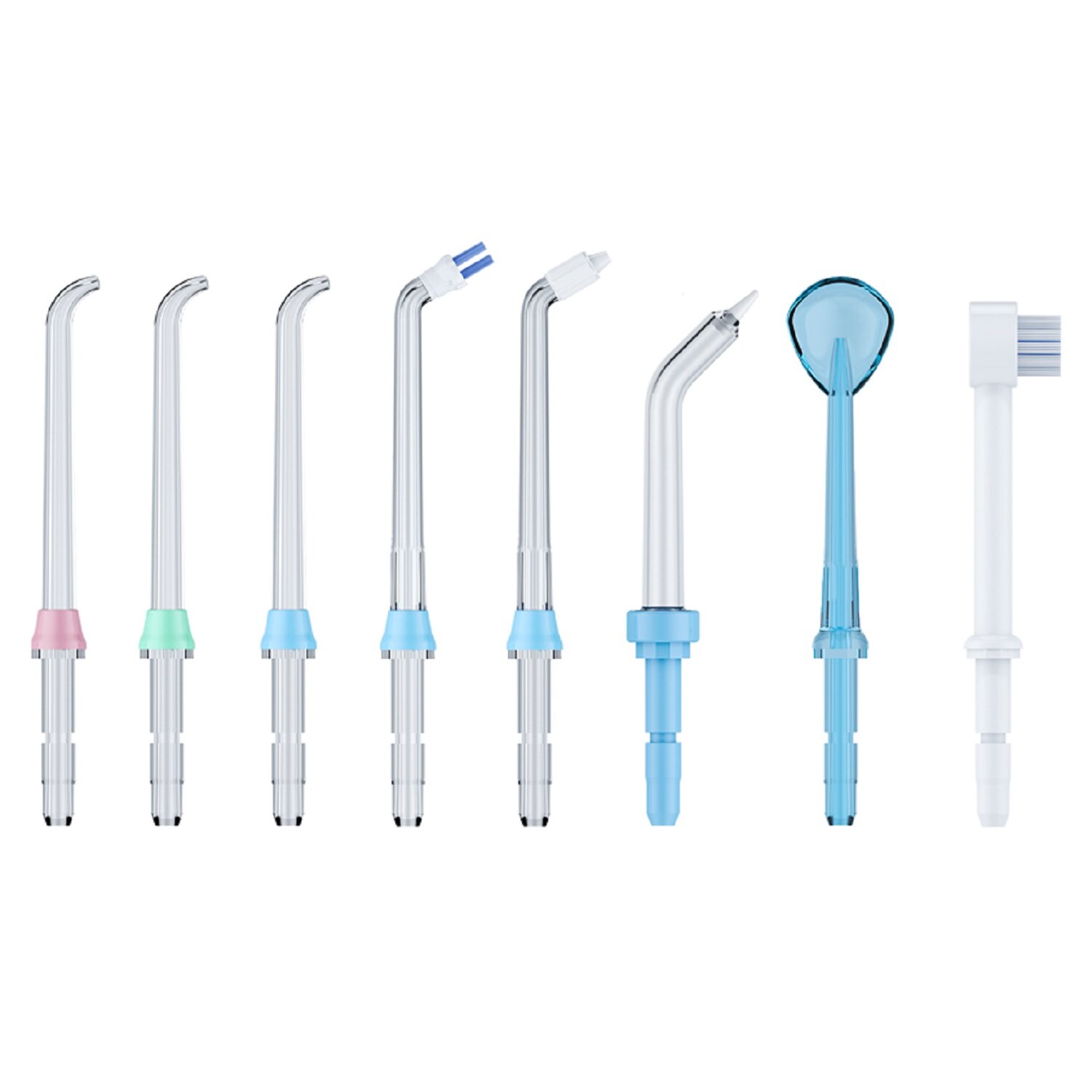 | 8 насадок | стандартные насадки (23шт.), ортодонтическая насадка - 1 шт, пародонтологическая насадка - 1 шт, насадка для чистки языка - 1 шт, насадка для имплантов - 1 шт, стандартная круглая - 1 шт |