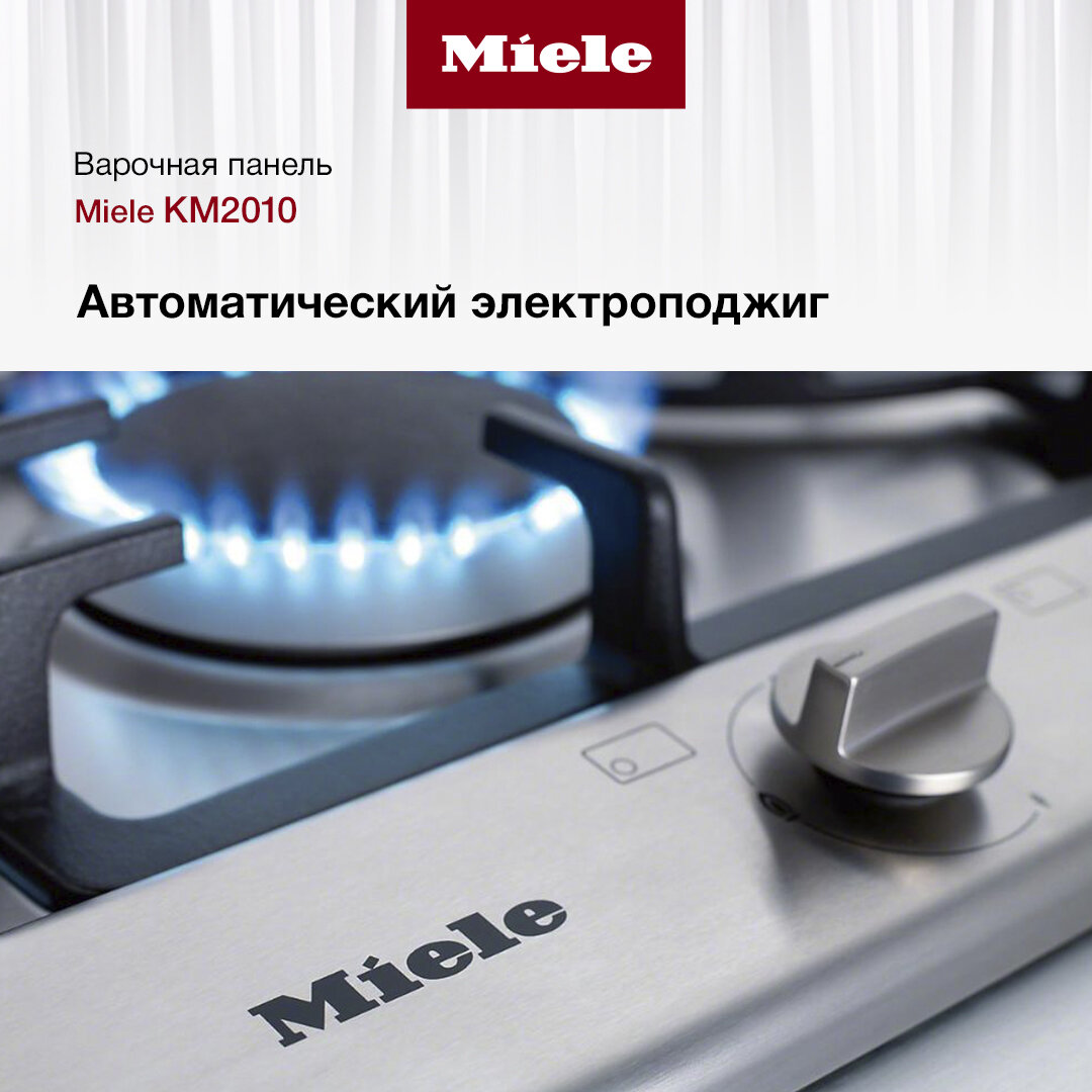 Газовая варочная панель Miele комплектуется конфоркой повышенной мощности High-speed, которая быстро иВ равномерно нагревает сковороды сВ толстым дном иВ крупногабаритные кастрюли, что экономит время. Автоматический электроподжиг позволяет разжечь горелку одним поворотом переключателя, без спичек иВ зажигалки, что гарантирует комфорт эксплуатации.