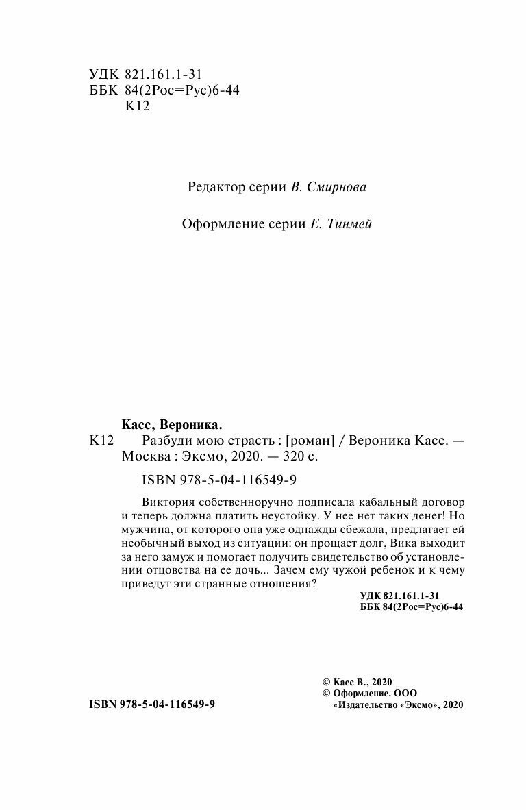 Книга: Разбуди мою страсть (Вероника Каас); Эксмо, Редакция 1, 2020