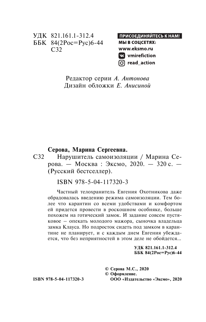 Книга: Нарушитель самоизоляции (Марина Серова); Эксмо, 2020