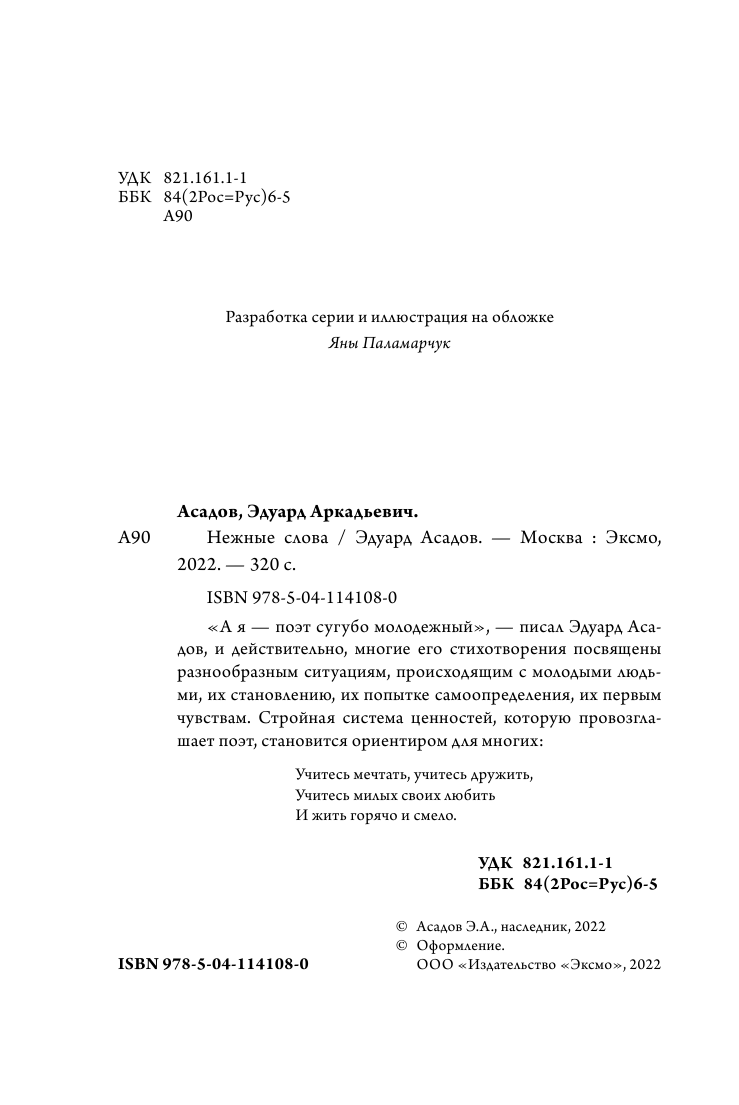Книга: Нежные слова (Эдуард Аркадьевич Асадов); Эксмо, 2023