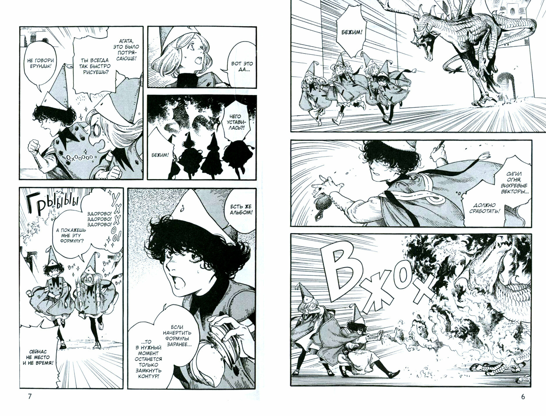 Во втором томике прекраснейшей манги нас будут знакомить уже со всеми остальными персонажами, и не только. Начинаешь понимать, в какую сторону будет уходить автор, и лично мне это очень нравится. Появляются главные проблемы данного мира и конфликты между героями. При этом абсолютно не уступает 1 тому, так же интересно читается и весьма быстро. Пейзажи, рисовка персонажей на таком же уровне. Рекомендую продолжать знакомиться с \"Ателье колдовских колпаков\".
