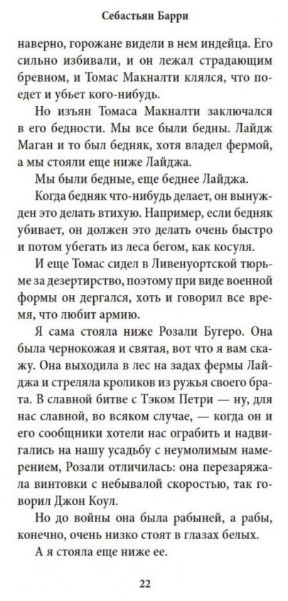 Неужели Барри сдулся. Это какой- то коммерческий роман, не очень похожий на два предыдущих. История индейской девушки, пережившей очень многое, прошедшей через унижения. В нем много об индейском укладе, есть в романе прямо в главных ролях и два гея, куда ж без них. Да и сама юная особа с наклонностями лесбиянки. Роман слез и сочувствия не вызвал. Считаю его для автора провальным. Рекомендовать к прочтению не буду.