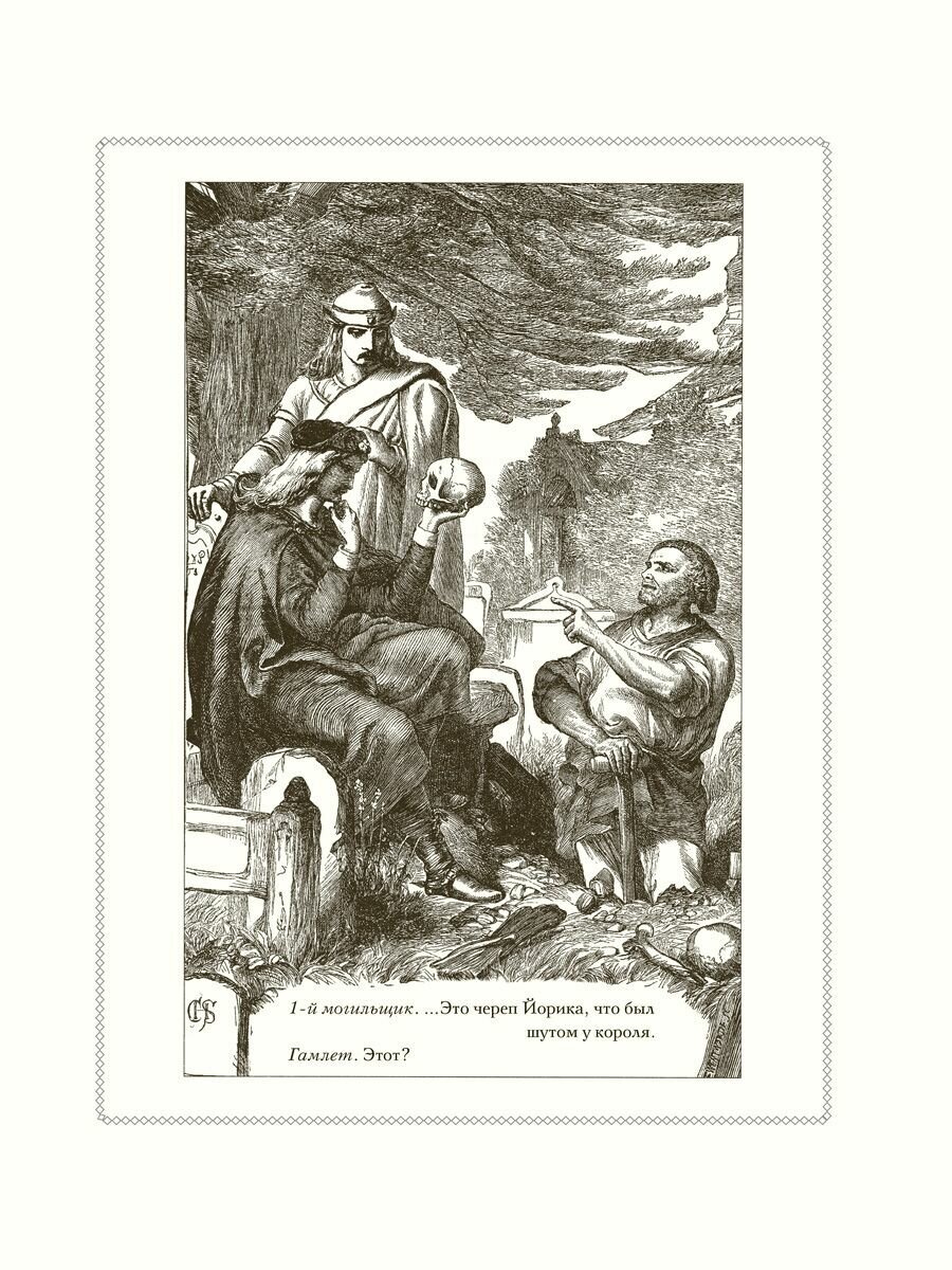 Будучи поклонником Шекспира и Сервантеса, Гилберт восхищенно относился к тем сценам и персонажам, которые эти писатели подарили миру, и создал свои иллюстрации для них. Наибольший интерес вызывают его работы к произведениям Шекспира, в том числе к «Гамлету», представленному в данном издании. Художник чувствовал и осознавал эту трагедию по-своему, однако его видение героев и некоторых сцен гармонично сосуществует с текстом, предоставляя вниманию читателя знакомые образы: Гамлета, его друга Горацио, Офелию и многих других.