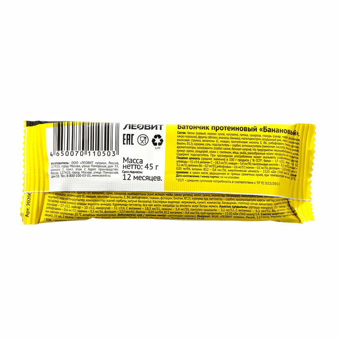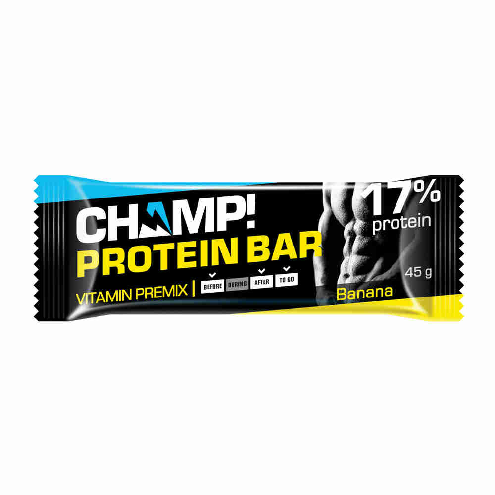 Вы активны и стараетесь придерживаться правильного питания? Ваш день расписан по часам, так что время от времени приходится пропускать основной прием пищи? Попробуйте протеиновый батончик «Банановый» – получите порцию белка и полезных веществ, а также удовольствие от яркого, насыщенного вкуса сочного банана! Полезно, вкусно, да еще и удобно – за счет своего компактного размера батончик помещается в любой сумке, его всегда можно взять с собой в дорогу и съесть, когда захотите. Занимайтесь спортом и будьте активны! Перекусывайте батончиками CHAMP!
