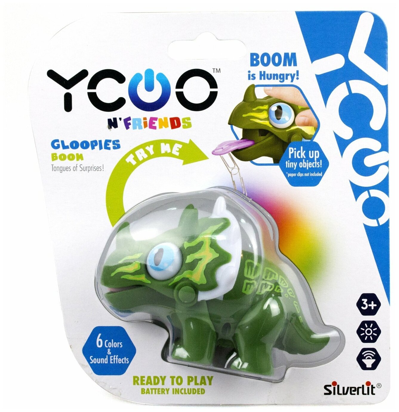 В наборе: динозавр. Требуются батарейки: 3 х AG13. Динозавр Глупи бренда YCOO удивит всех окружающих своими способностями: он умеет поглощать мелкие металлические предметы! Его язычок имеет магнит. Нажмите на голову динозавра, язычок выстрелит и притянет все металлические «вкусняшки»: скрепки, кнопки, гвоздики. Сейчас у вас точно ничего не потеряется. Кроме этого, робот оснащен световыми и звуковыми эффектами, что делает игру ещё интереснее! Дети весело проведут время и попутно потренируют мелкую моторику рук, внимание и воображение.