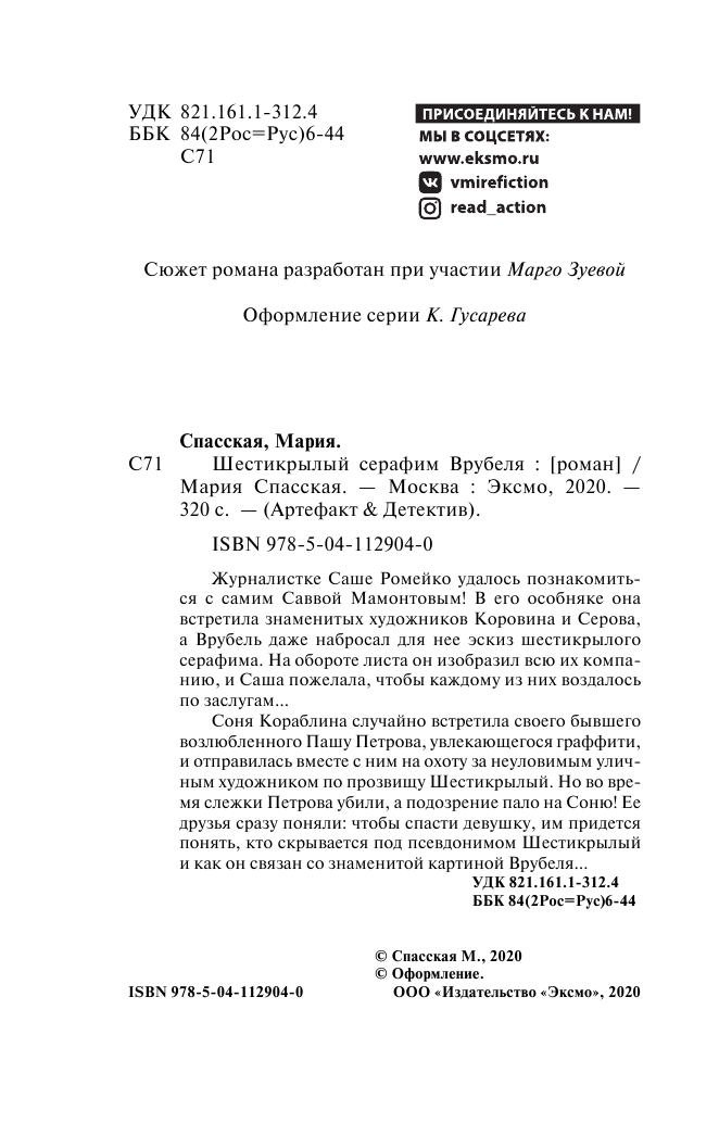 Шестикрылый серафим Врубеля (Мария Спасская); Эксмо, Редакция 1, 2020