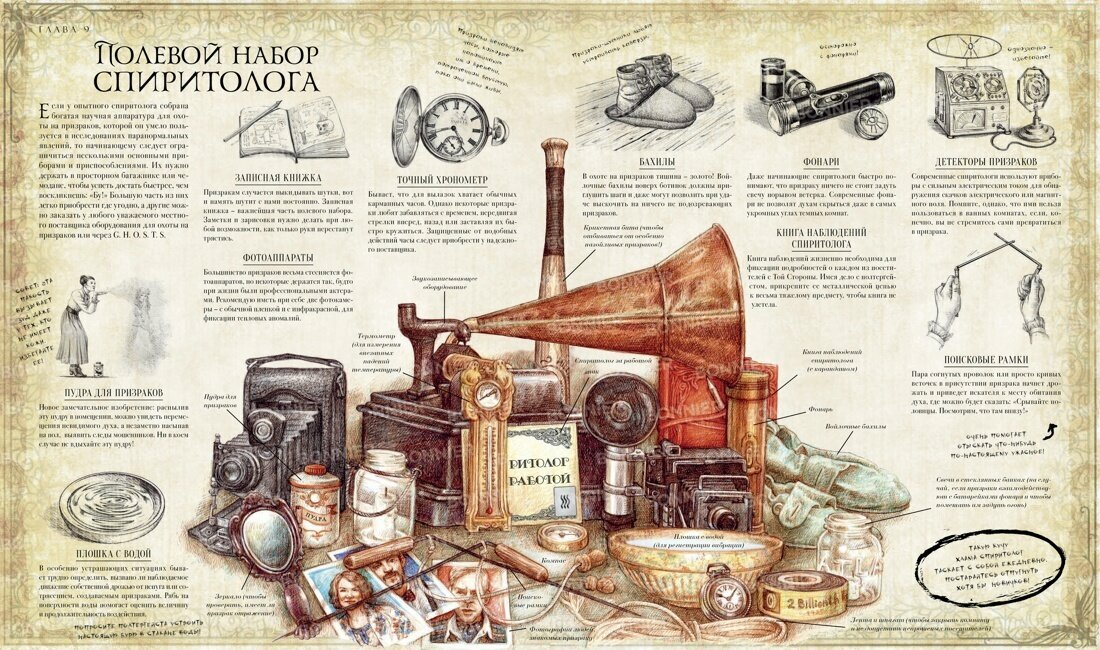 Отличная книга, которая будет интересна не только детям, но и взрослым:) достаточно много приложений, увлекательной информации о призраках и прочих мистических существах. Некоторые моменты даже мне показались жутковатыми😂 была бы у меня такая книга в детстве, то при прочтении в темноте точно бы вызвала у меня эмоции. Пугающая атмосфера, красивое оформление, увлекательный мир мистики - именно то, что надо. Буду хранить "Спиритологию" и скажу детям передавать её по наследству🤣 уж очень занимательная вещь