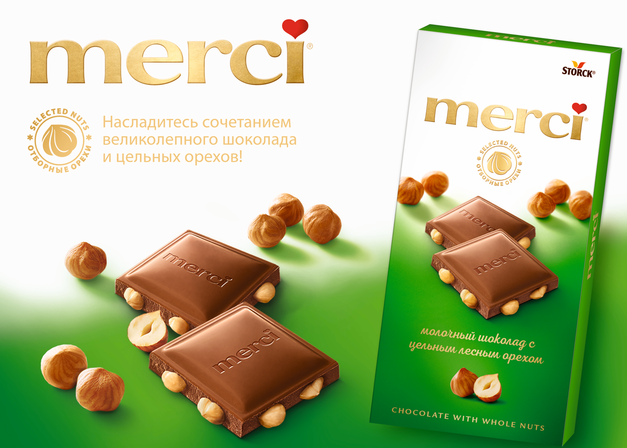 Шоколад Merci Молочный с цельным лесным орехом 100г August Storck KG