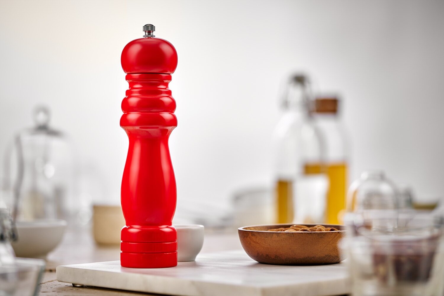 Мельница для специй Richardson – стильный и безусловно полезный кухонный прибор. Запах готового молотого перца из фольгированных пакетиков не идет ни в какое сравнение с ароматом свежемолотых специй. Удобно и то, что можно одновременно перемалывать перец и морскую соль. Для засыпания специй необходимо открутить металлическую шайбу, удерживающую крышку. Для мелкого помола нужно повернуть гайку по часовой стрелке, для более крупного – в обратном направлении. Измельчающие лезвия изготовлены из прочной керамики, ось и фиксирующая пластина – из нержавеющей стали. Деревянный корпус стилизован под шахматную фигуру и удобно ложится в ладонь.