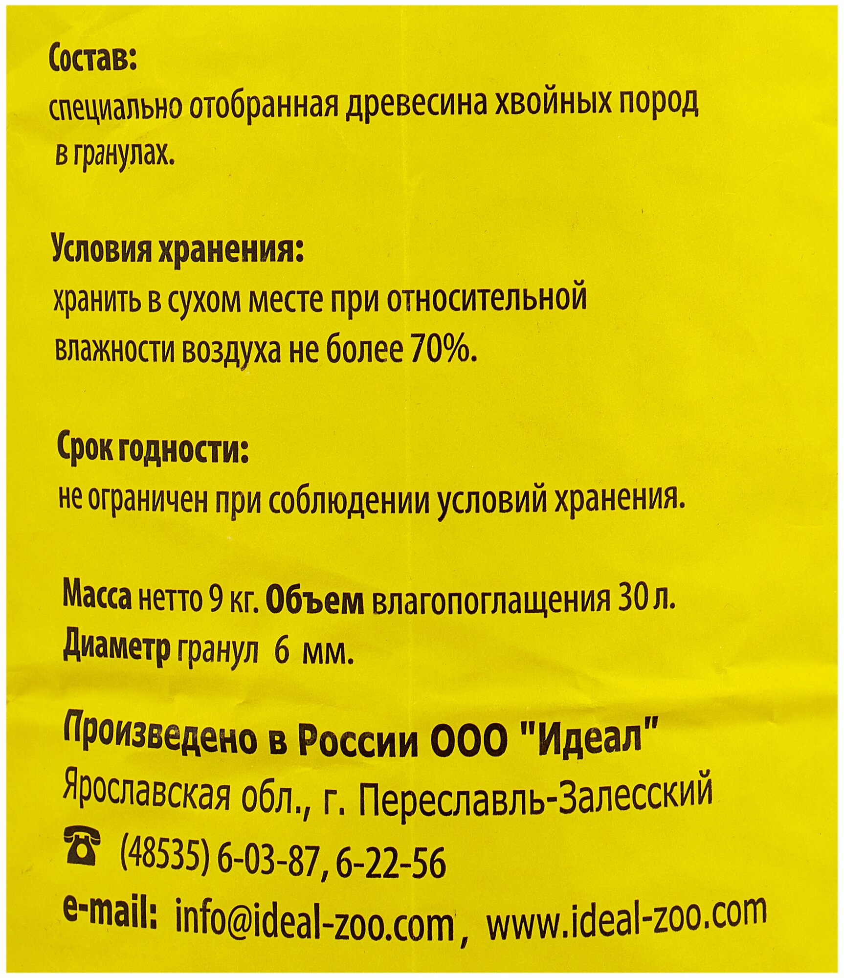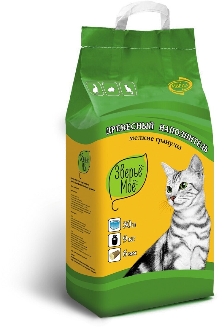 Наполнитель для кошачьего туалета Зверье Мое древесный мелкие гранулы 30л 9кг Мелкие гранулы 9 кг