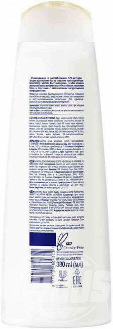 | Способ применения | Нанесите на влажные волосы, вспеньте, смойте. Совет от Dove: для наилучшего результата используйте бальзам-ополаскиватель Dove каждый раз после мытья волос. |