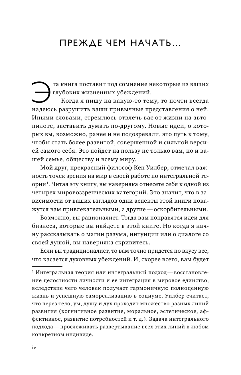 Автор книги Вишен Лакьяни переворачивает наше представление о том, что зарабатывать деньги надо тяжким и упорным трудом. Основатель и генеральный директор обучающей онлайн-платформы Mindvalley, автор бестселлера «Код экстраординарности», переведенного более чем на 20 языков и ставшего лучшей деловой книгой года в России, уверен, что с помощью его методики можно перестать быть незаметным винтиком, который бодро используют в своей работе крупные корпорации. Вишен Лакьяни превратил свою собственную жизнь и компанию в свою исследовательскую лабораторию. Все, чему он научился, он записал в инструкции, приведенные в этой книге.