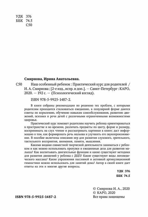 Сервис сравнения цен СкидкаГИД предлагает сравнить цены на товар «Книга: Наш особенный ребенок. Практический курс для родителей. (Ирина Анатольевна Смирнова); КАРО, 2020»