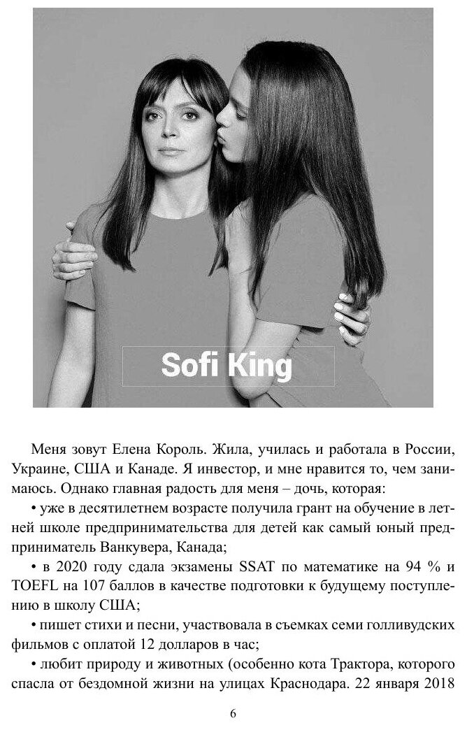 Книга живая и пропитана истинной любовью к своему ребёнку, которая заключается именно в помощи подростку в поиске себя и построении здоровых отношений с людьми. Жаль, что она не попала ко мне в руки восемь лет назад, когда моей дочери было одиннадцать, многие вопросы были бы решены намного легче. Спасибо авторам за проделанную работу – книга получилась настоящим руководством к действию. Искренне желаю Софии добиться своих целей и и сделать свою жизнь такой, как хочется