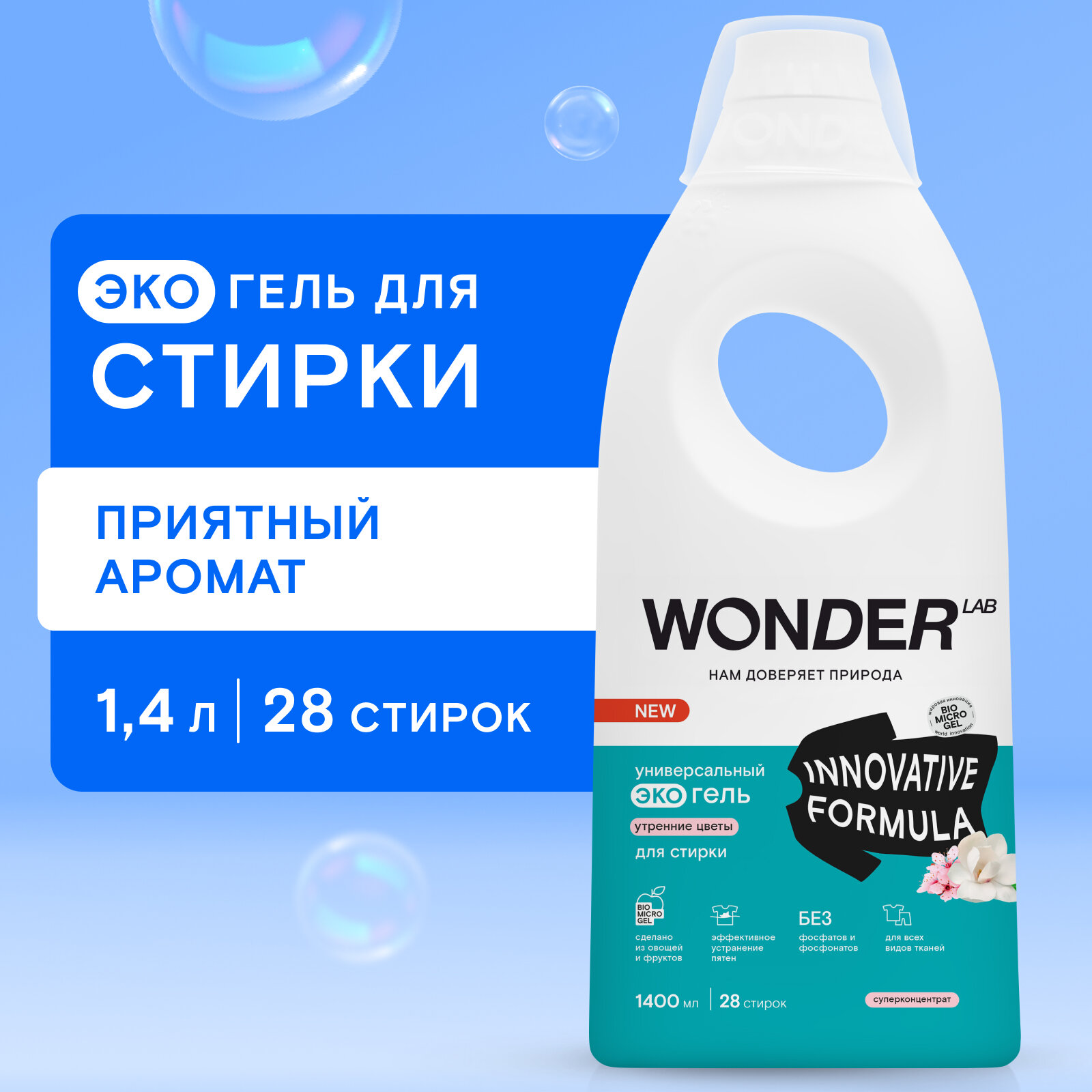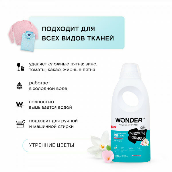 Экогель для стирки Wonder Lab Innovative Formula универсальный Утренние цветы 1л