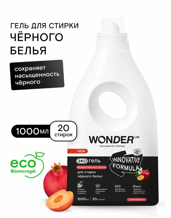 Экогель для стирки Wonder Lab Innovative Formula для черного белья Ландыш и красные фрукты 1л