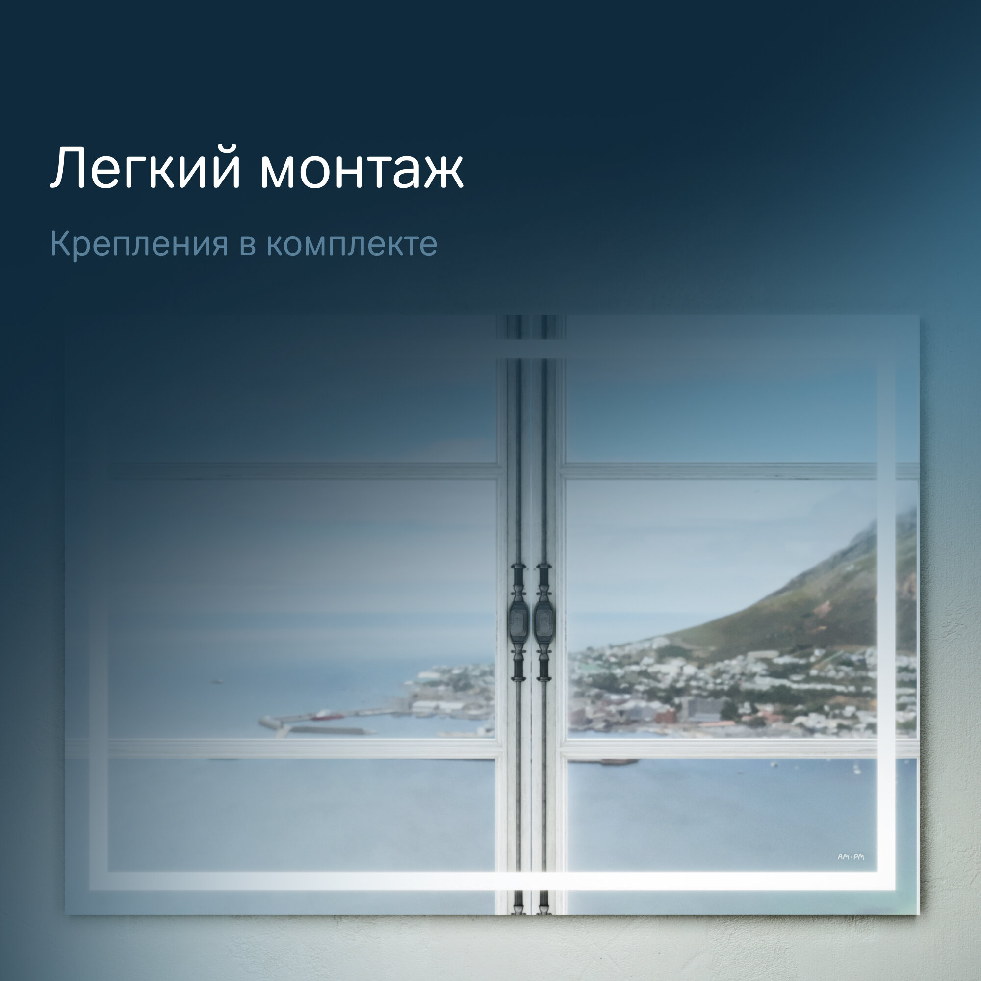 Скрытый механический выключатель сохраняет эстетическую целостность дизайна зеркала, а также гарантирует отсутствие отпечатков пальцев на зеркальном полотне. Зеркальное полотно премиального качества производства Бельгии. Гарантия 3 года.