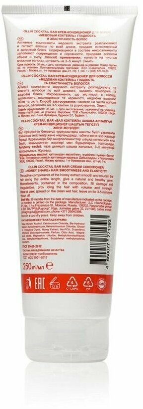 Сервис сравнения цен СкидкаГИД предлагает сравнить цены на товар «Ollin Professional Крем-кондиционер для волос Медовый коктейль гладкость и эластичность волос 250 мл (Ollin Professional ) (771393)»