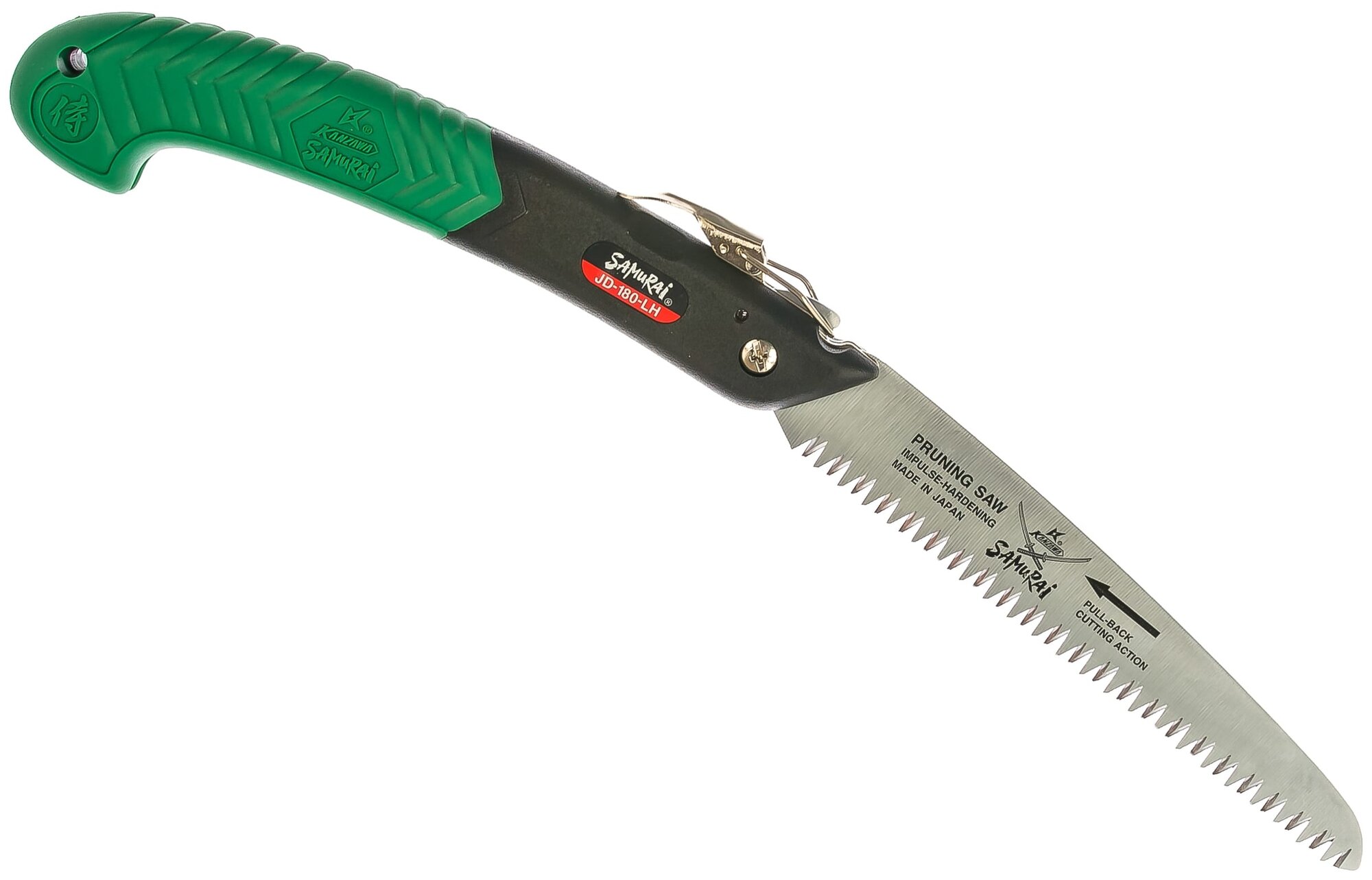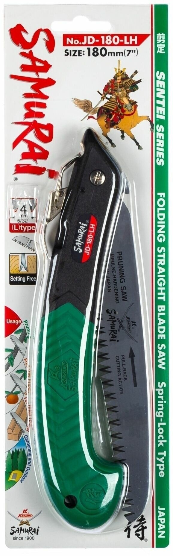 Серия JD – пила со складным прямым полотном и пружинным типом замка. Шаг 4мм Великолепно сбалансированная складная ручная пила для садоводов, огородников, туристов и т.д. Зауженное утонченное полотно пилы и разработанные эргономические рукоятки Samurai, обеспечивают исключительный комфорт и отличное режущее действие. Прямое лезвие этой пилы обеспечивает лучшие результаты при резке ниже уровня плеча.