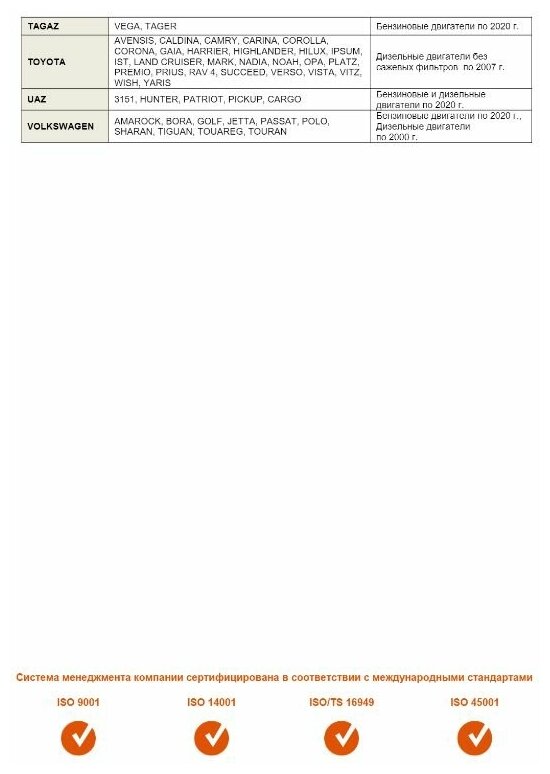 | Допуски OEM | MB 229.3, VW 502 00/505 00, RENAULT RN 0700/0710, ПАО "АВТОВАЗ" |