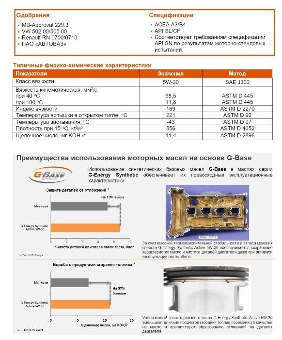 | Допуски производителей (OEM) | MB 229.3, RN 0700, RN 0710, VW 502 00, VW 505 00, АВТОВАЗ |