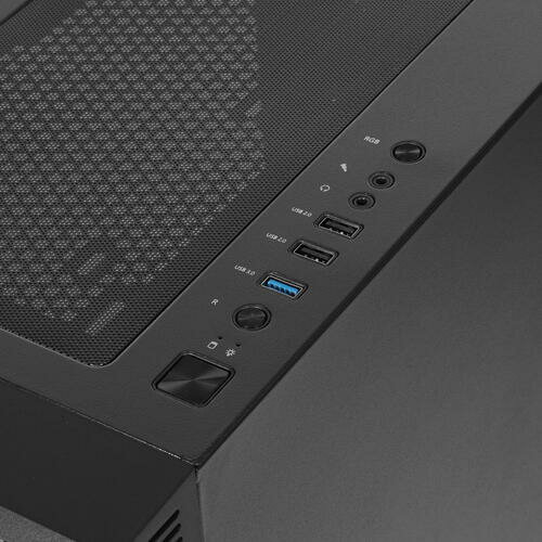 Добротный красивый корпус, вмещающий материнки стандарта ATX, вентиляционные отверстия на верхней части кожуха блока питания, отдельная кнопка для управления LED-подсветкой. Спереди стекло и корпус не слишком хорошо продувается через маленькие отверстия спереди, но верх полностью продуваем поэтому с охлаждением проблем нет.