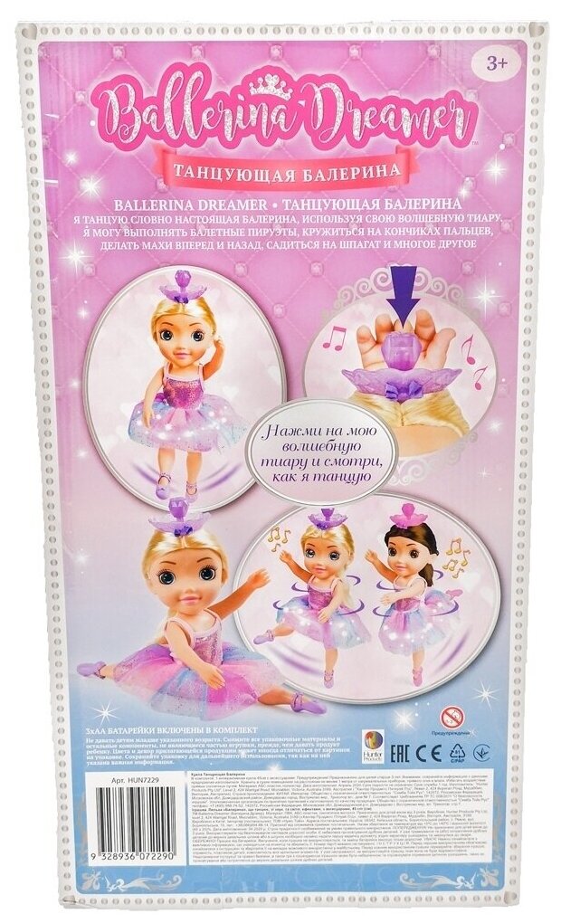 С куклой Ballerina Dreamer ребенок погрузится в атмосферу настоящего балета. Приобщайте детей к прекрасному с помощью Ballerina Dreamer. Нажимая на тиару, ребенок будет наблюдать за великолепным танцем Балерины. Руки и ноги куклы подвижные, что позволяет Балерине создавать прекрасные балетные движения, и даже садиться на шпагат. Сюжетные игры с Балериной помогут в развитии воображения и образного мышления, а главное – станут частью исполнения мечты вашего ребенка.