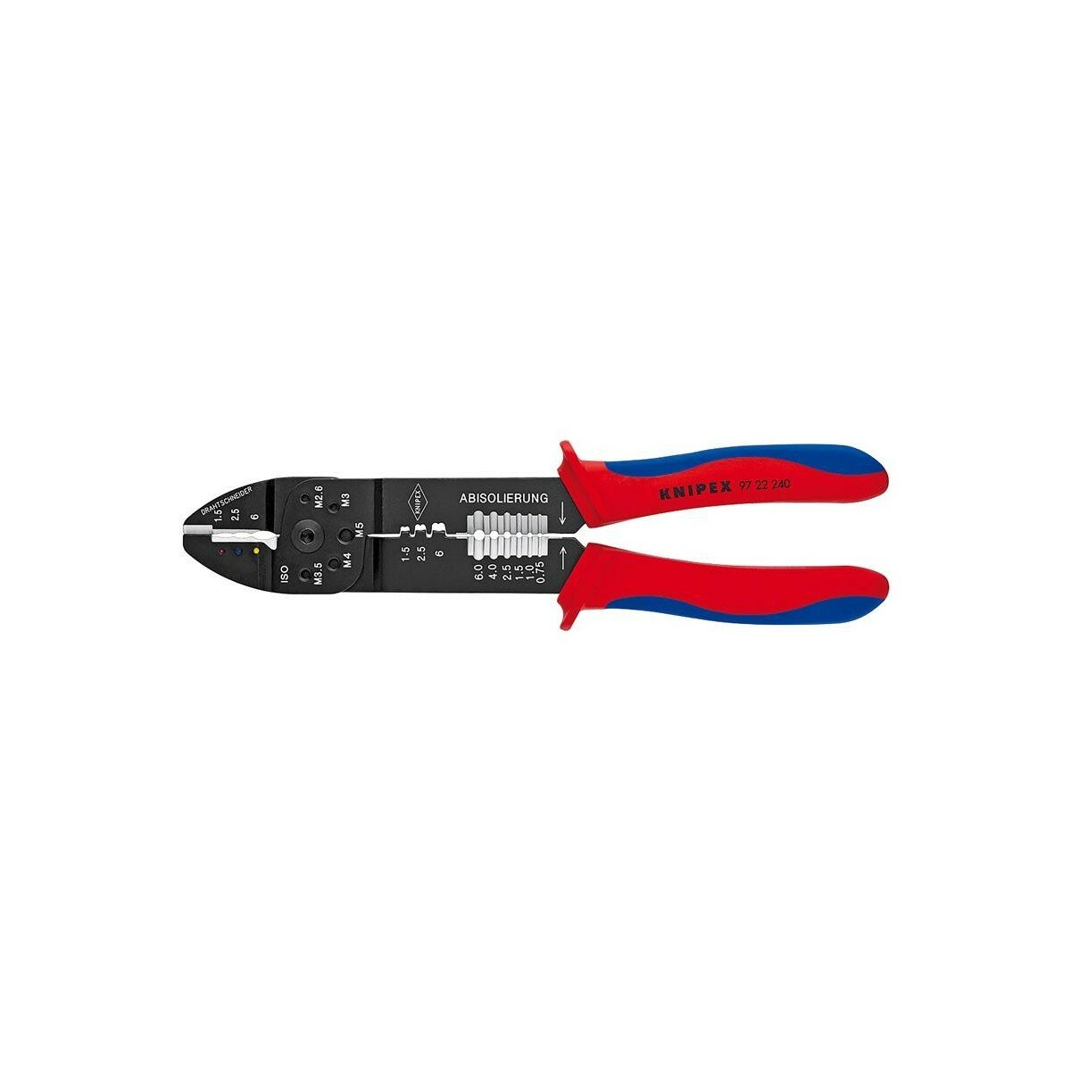 Клещи зажимные для опрессовки. Применяется для резки кабелей, удаления изоляции с проводов и опрессовки изолированных и неизолированных кабельных наконечников и штекеров. Специальная сталь, высокопрочная.