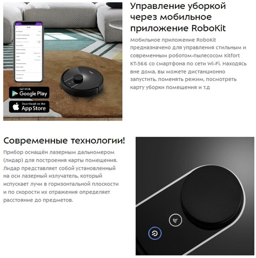 Мобильное приложение RoboKit предназначено для управления стильным и современным роботом-пылесосом Kitfort со смартфона по сети Wi-Fi. Находясь вне дома, вы можете дистанционно запустить, поменять режим, посмотреть карту уборки помещения и т.д.