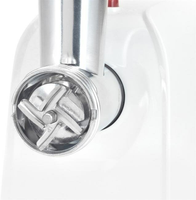 Мясорубка Hyundai – компактный многофункциональный прибор. Мощный двигатель позволяет ей быстро справляться с работой, а режущий блок из прочного металла делает ее очень надежной. Функция реверса значительно облегчает очистку шнека от намотавшихся жил и прилипших кусков мяса. Прорезиненные ножки помогают прибору сохранять устойчивое положение во время работы.