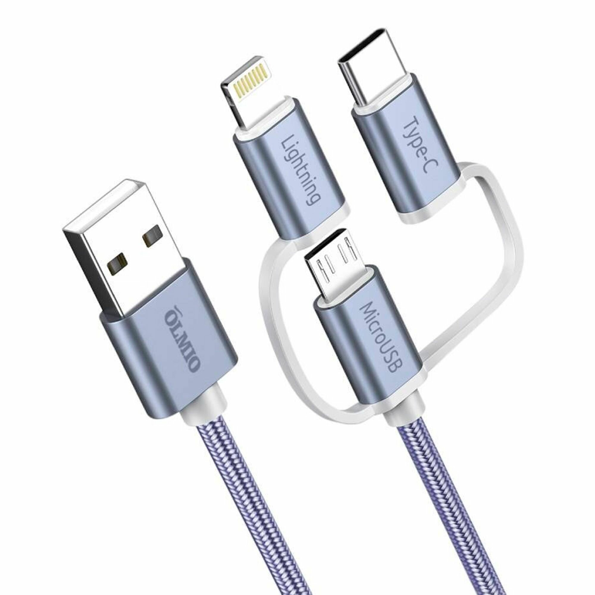 Кабель 3-в-1 USB - microUSB/ 8pin/ Type-C 2.1A (gray) Olmio 038896