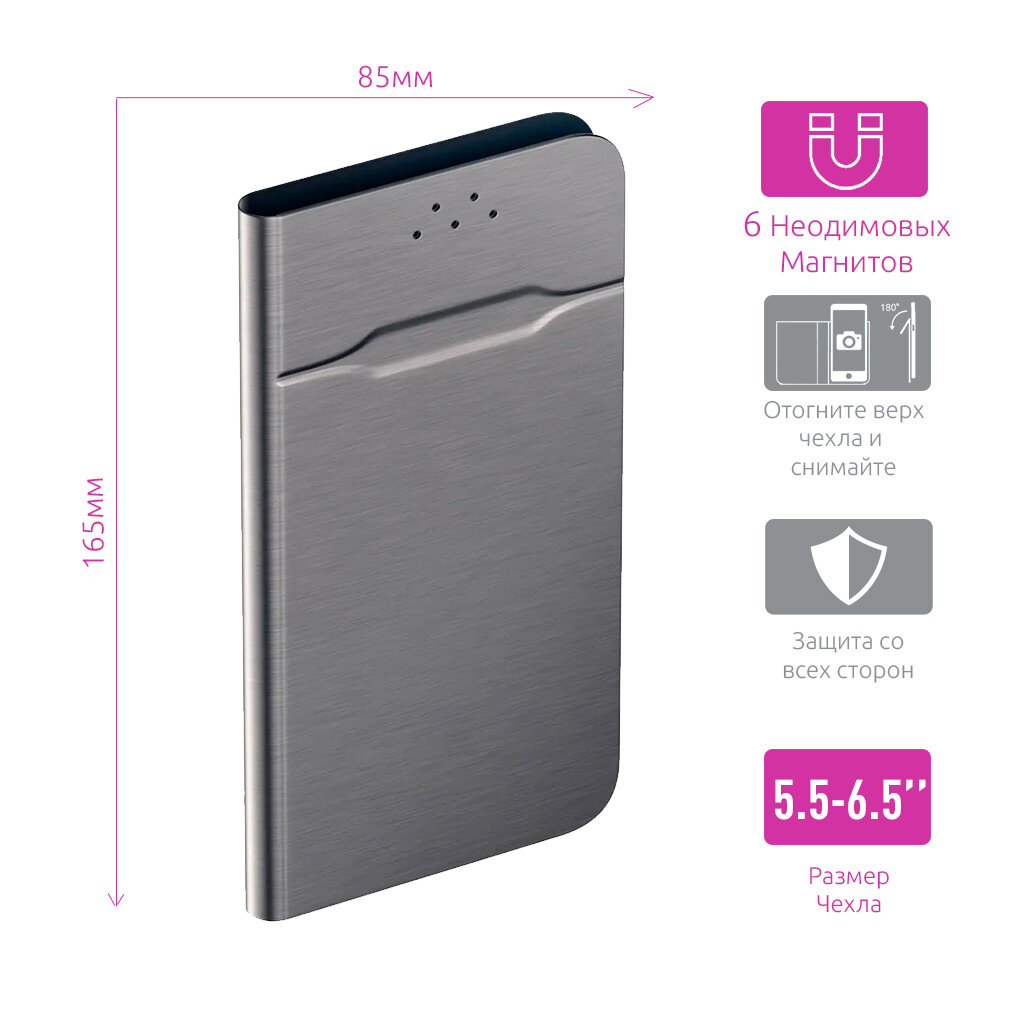 Модель: Универсальный чехол-книжка для смартфонов 5.5-6.5" (gray)