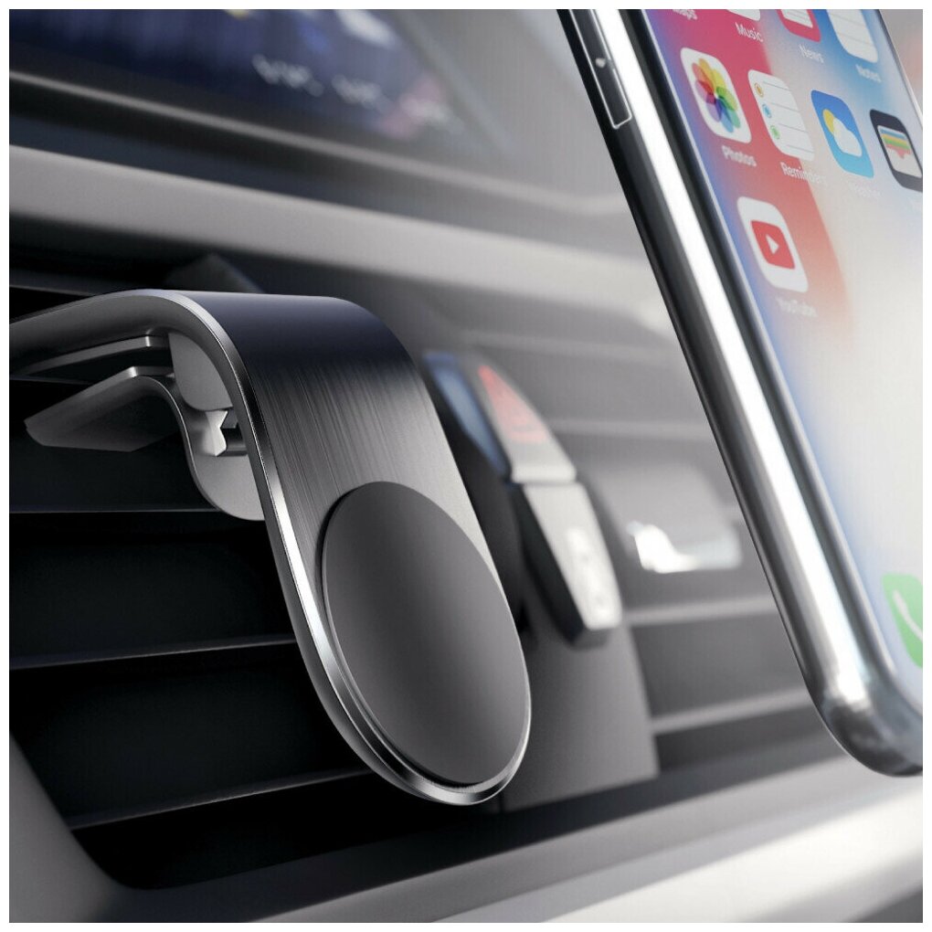 Автомобильный держатель Magnet Clip создан для того, чтобы Вы могли удобно разместить телефон в машине. Держатель изготовлен из качественных материалов, не занимает много места в салоне и не мешает обзору дороги.Magnet Clip — держатель в воздуховод, который легко установить даже одной рукой. Крепится на решетку с помощью зажима, не скользит и не вываливается благодаря плотным силиконовым прокладкам. Длина аксессуара со стороны зажима — 38 миллиметров.Смартфон удерживается крупным магнитном. Длина устройства со стороны магнита — 57 миллиметров. На прием сигнала и работу телефона магнит никак не влияет. В комплекте с держателем идут две металлические пластины, круглой и прямоугольной формы. Они предназначены для установки телефонов со стеклянными или пластиковыми корпусами. Пластины можно установить на сам смартфон, а также на или под чехол.Автодержатель Olmio Magnet Clip предназначен для смартфонов с диагональю экрана от 3,5 до 7 дюймов. За счёт конструкции зажима аксессуар подходит для подавляющего большинства решеток на воздуховод.