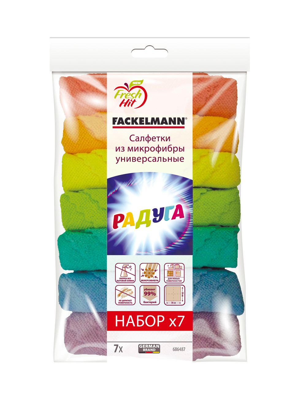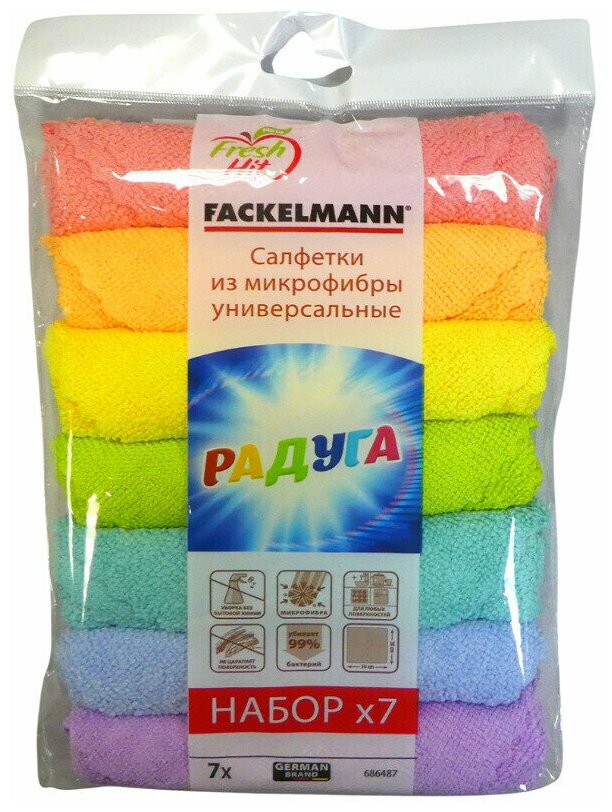 Набор из 7-и универсальных салфеток FACKELMANN Fresh HIT ярких расцветок - на кухне и дома незаменимые помощники в уборке помещений. Сухая и влажная уборка станут намного легче и быстрее, если под рукой у вас будут эти замечательные салфетки.