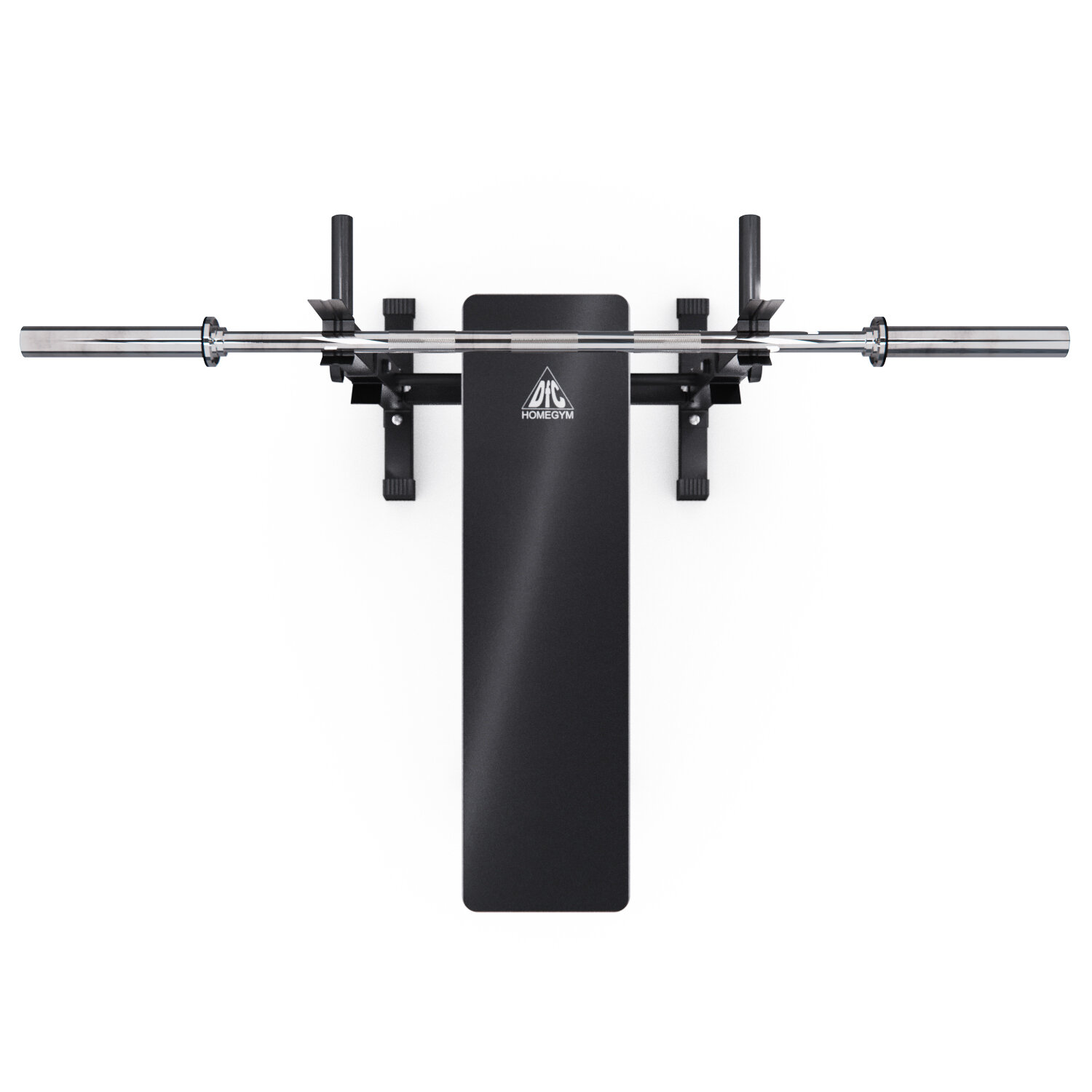 Две рукоятки с обратной стороны стоек предназначены для отжиманий. Складная конструкция позволит сложить скамью после занятий. Тренажер занимает совсем мало места.