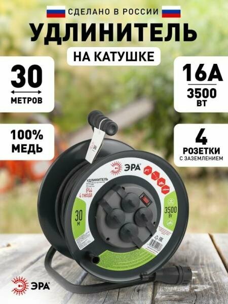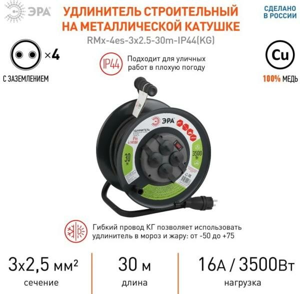 Удлинитель силовой Эра RMx-4es-3x2.5-40m-IP44(KG) (Б0043059) 3x2.5кв.мм 4розет. 40м ПВС 16A метал.ка