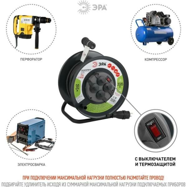 ЭРА Удлинитель силовойRMx-4es-3x2.5-40m-IP44(KG) на металлической катушке c заземлением 4 розетки 40м КГ 3х2.5мм2, Б0043059