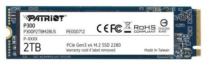 SSD накопитель PATRIOT P300 2ТБ M.2 2280 PCI-E x4 NVMe P300P2TBM28