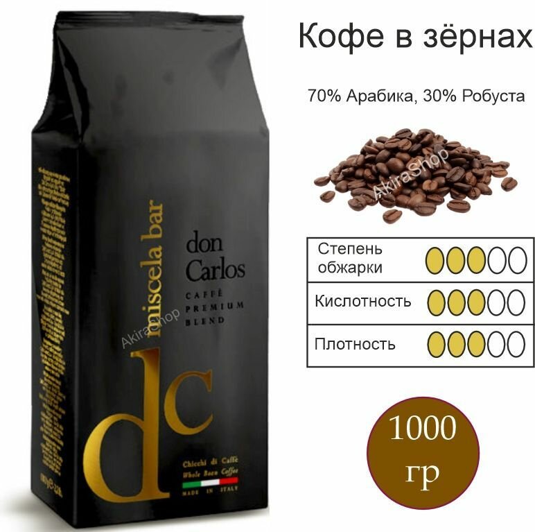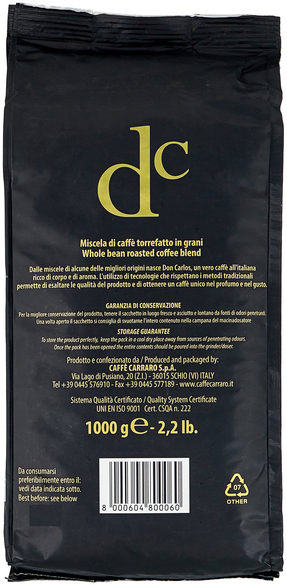 Кофе в зернах Carraro 1 кг (Карраро Дон Карлос, масса – 1000 гр) представляет собой сбор сортов арабики и робусты. Соотношение 70 на 30 позволяет создать сбалансированный вкус с ненавязчивыми пряными оттенками и длительным послевкусием. Итальянская обжарка наделяет бленд крепостью. Насыщенный аромат заполняет пространство и притягивает к себе. Дизайнерская вакуумная упаковка оберегает кофейные зернышки от повреждений. Подходящий тип кофемашины – зерновая.