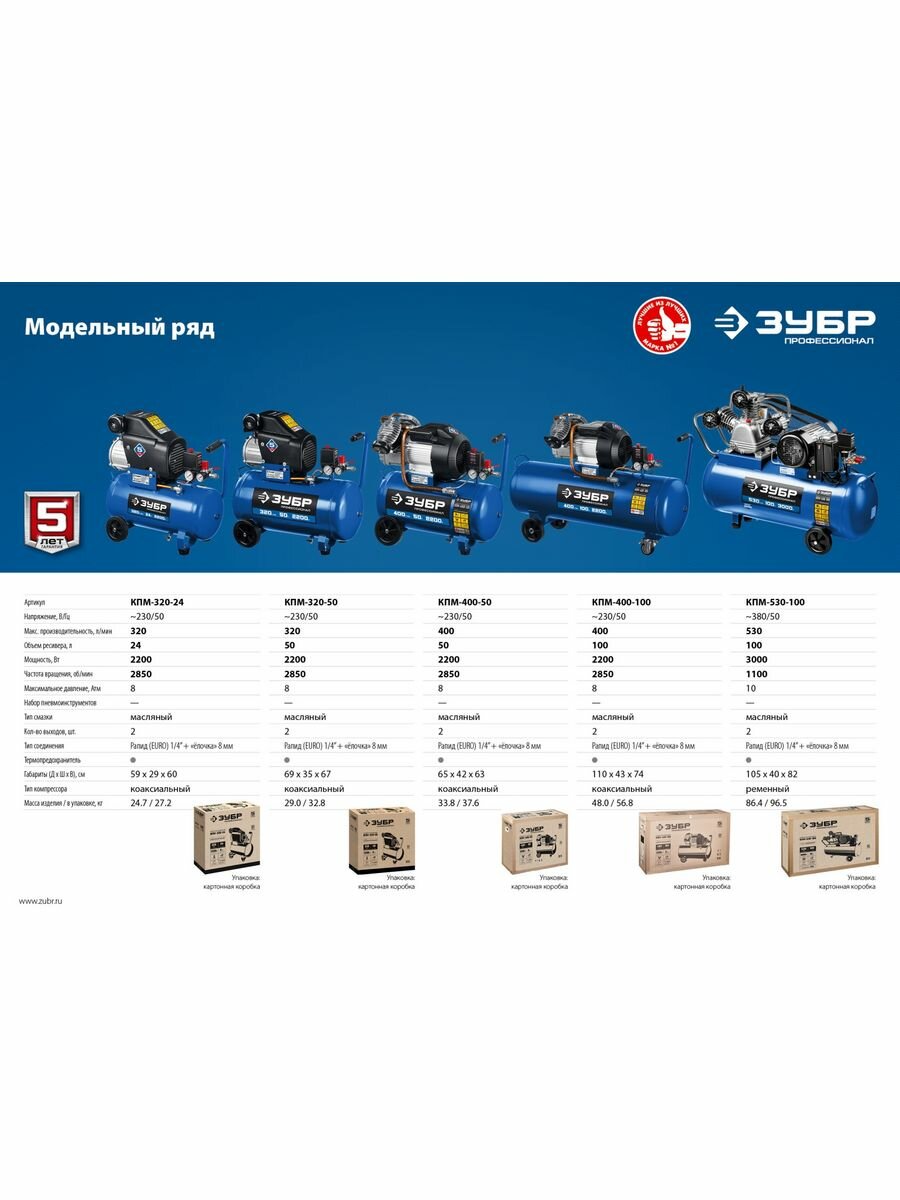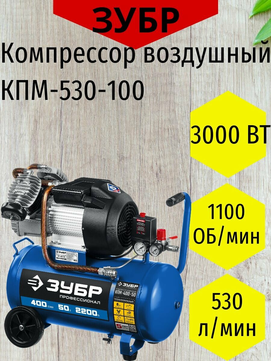 Компрессор поршневой ЗУБР масляный КПМ-530-100