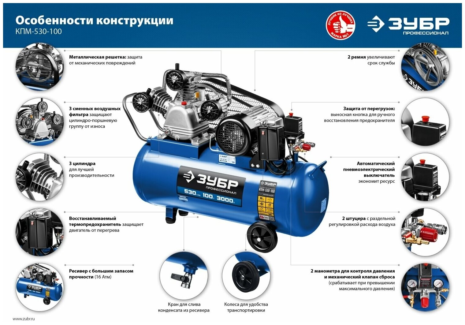 Сервис сравнения цен СкидкаГИД предлагает сравнить цены на товар «Компрессор поршневой ЗУБР масляный КПМ-530-100»